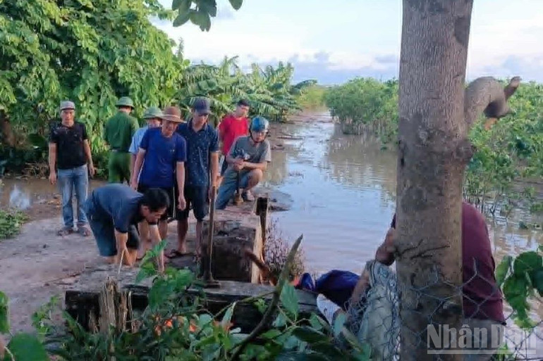 Ông Nguyễn Quốc Huy, Chủ tịch Ủy ban nhân dân xã Tân Thuận cho biết: Trên địa bàn đã có khoảng 50ha cây cối, hoa màu ngoài đê bối bị ngập úng; hơn 20 hộ chăn nuôi có chuồng trại ngoài đê bối cũng chịu hoàn cảnh tương tự.