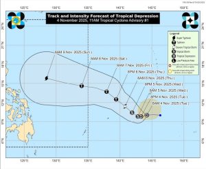 PAGASA cho biết áp thấp nhiệt đới này sẽ tiếp tục mạnh lên trên vùng biển phía đông Philippines trong suốt thời gian dự báo.